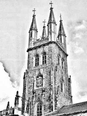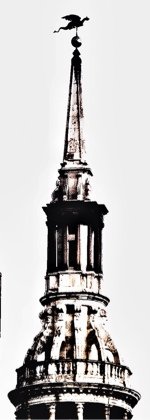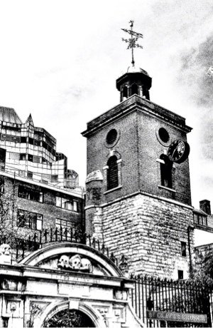 The tower of St Sepulchre-without-Newgate. Note the four weathervanes which always seem to point in different directions, giving rise to an old saying about unreasonable people: ‘as hard to reconcile as the vanes on St Sepulchre’s tower’: