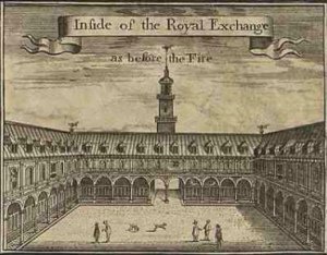 In my previous post I noted that it is said that the Royal Exchange grasshopper is even older, possibly dating back to the original Exchange built in 1567. Images of that building (see below) clearly show that there were several similar grasshopper vanes mounted on the roof, but I’ve seen other sources that suggest these were lost in the Great Fire and that the current vane is from the second Exchange dating from 1669. If anyone has the definitive position, please let me know in the comments box!