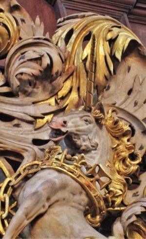 Royal Arms, St Margaret Pattens (detail of unicorn)