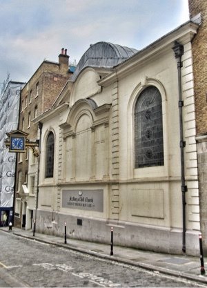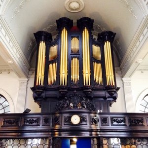 Inside the church all is surprisingly bare apart from the beautiful domed ceiling and the organ. This is a reflection of the 1988 fire (see below); thankfully the splendid 1848 organ, considered to be one of London’s finest, has been restored to its former glory.