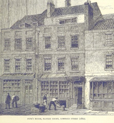 14 years after Milton’s death, in 1688 Alexander Pope was born in a house in Plough Court, off Lombard Street.
